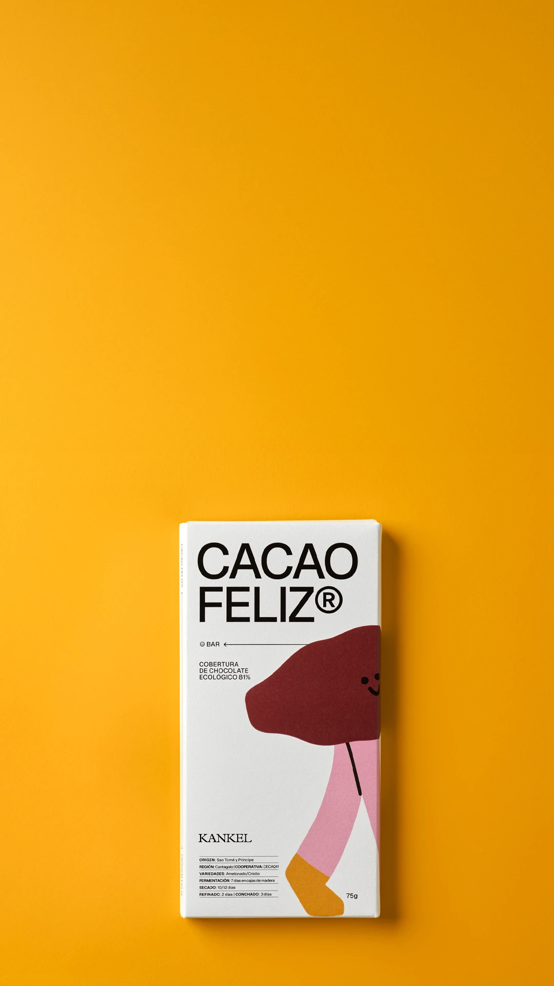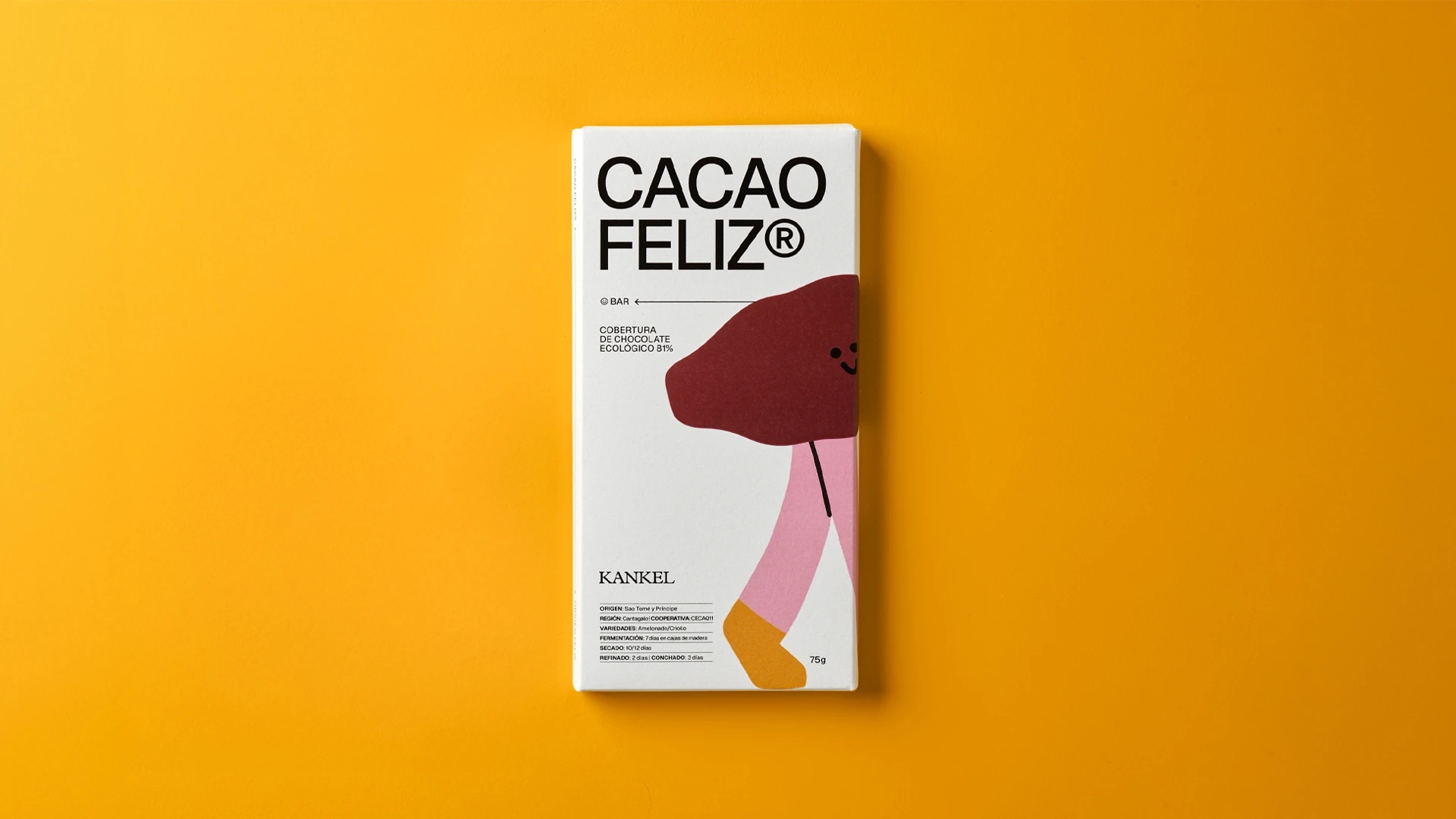 Elaborado por Chocolates Kankel con cacao procedente de la cooperativa CECAQ-11 de São Tomé.